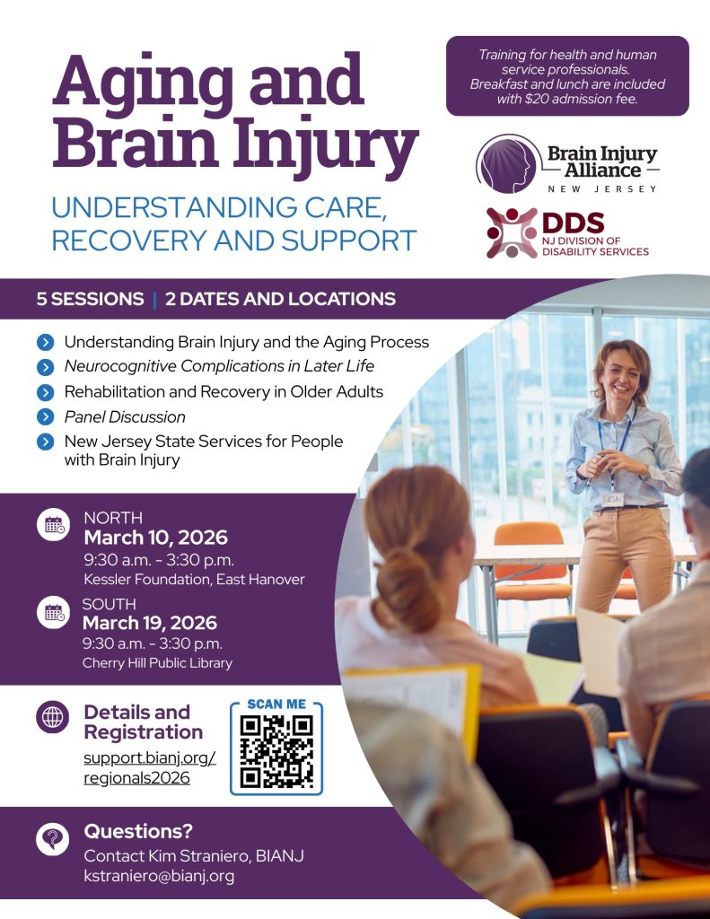 Join the Brain Injury Alliance of New Jersey as we present the 2026 regional trainings for Health and Human Service Professionals.
